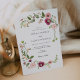 Wedding invitation featuring an elegant border of bohemian inspired flowers with poppies and burgundy and mauve flowers. Customise with your information.