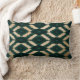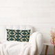Bohemian Gold Forest Green Ikat Pattern Lumbar Cushion