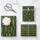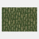 Three festive sheets with three designs. Boho tribal trees, chevrons, and stars. Patterns printed in faux gold foil. Bohemian Green Gold Xmas Pattern Wrapping Paper Sheets. Colour #1B3007