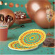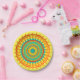 Colourful paper plates with mandala design in colours of turquoise, orange and yellow.