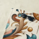 Nature-inspired, free-spirited, illustrative oil painting in bohemian style features flowers and a mix of patterns and textures on a cream, mustard yellow, teal, and magenta background, perfect for any celebration and decor gifts.