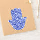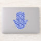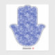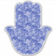 Colourful blue and white Hamsa Hand. The hand is printed with a bohemian style delicate pattern.