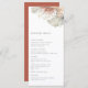 Modern earthy dried bohemian jungle foliage and floral watercolor arrangement menu card, chic typography template with multiple lines for your custom menu items. Features, solid coordinating rust colour backing.
