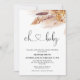 Oh baby bohemian inspired baby shower invitation featuring an earthy colored floral arrangement with pampas grass and modern heart calligraphy image as a heading.