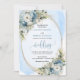 Set the tone for an unforgettable celebration with this elegant watercolor wedding invitation, beautifully designed with dusty blue florals, soft white peonies, and delicate eucalyptus
