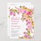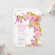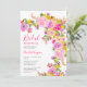 A pretty , girly Bohemian pink roses, wildflowers spring summer bridal shower party with pretty pastel blush pink roses, wild country flowers in boho lavender, peach, coral, red, green leaves, fern and more, with a brushed script typography on an elegant editable white background.