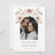 This Bohemian Rose Arch Photo Save the Date Announcement design features a watercolor rose swag on top of an arch frame with a modern and simple text design. Add your favourite photo and wedding date to customise. Perfect design for spring and summer weddings.