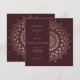 Modern elegant bohemian floral lace mandala illustration in rose gold on customisable red marsala burgundy wedding, perfect for boho, summer wedding theme.
