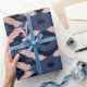Bohemian Rose Gold Navy Blue Ikat Pattern Wrapping Paper