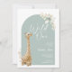 Bohemian Sage Green Giraffe Wild One Birthday Invitation