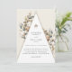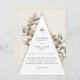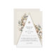 Unveil the rustic beauty of your boho-inspired wedding with this bohemian Triangle Wedding Invitation. The unique design, featuring a white triangle nestled amidst watercolor cottons and eucalyptus foliage, sets the stage for your celebration. This invitation captures the organic and natural charm of your special day, with an optional QR code on the back for easy access to wedding information.