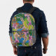 This backpack boasts an intricate, hand-drawn design inspired by nature. Delicate flowers and lush leaves intertwine, creating a captivating tapestry that covers the entire surface. A harmonious blend of blues, greens, pinks, and yellows infuses the design with vibrancy. Each hue complements the other, evoking a sense of freshness and vitality. At the top centre, you’ll find space for personalised text. You can replace it with your name, a favourite quote, or any message that resonates with you.