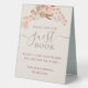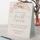 This design is a beautiful representation of the boho theme, featuring elegant calligraphy lettering script and watercolor flowers. The combination of these elements creates a whimsical and romantic feel, perfect for a bohemian wedding. The Tent Sign serves as a lovely addition to your guest book table, encouraging guests to leave their well wishes and messages for the happy couple. The design is both simple and elegant, making it a timeless keepsake of your special day.