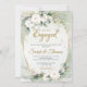 Bohemian White roses eucalyptus gold oval frame Engagement Invitations,