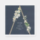 A beautiful bohemian style rustic wood pyramid with white watercolor florals cascading on the side and a blue background. A unique design that uses vintage white watercolor botanicals on a bohemian triangle structure. A charming white floral design with rustic and geometric features and elegant script typography. An elegant wedding napkin design with modern elements. Matching wedding invitations and other stationery items are also available.