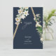 A beautiful bohemian style rustic wood pyramid with white watercolor florals cascading on the side and a blue background. A unique design that uses vintage white watercolor botanicals on a bohemian triangle structure. A charming white floral design with rustic and geometric features and elegant script typography. An elegant wedding thank you card design with modern elements. Matching wedding invitations and other stationery items are also available.
