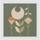 A boho inspired design of simples shapes in rustic colours of green, tan, beige, brown, and orange.