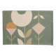 A boho inspired design of simples shapes in rustic colours of green, tan, beige, brown, and orange.