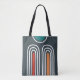 Boho abstract rainbow art in blue background tote bag