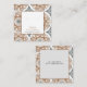 An earthy boho style earring display card design with muted brown and grey abstract pattern hues with a central nameplate. Coloured type is used in brown and black to pick up the colours in the abstract design.