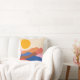 Boho Aesthetic Abstract Landscape Mountains in Blue and Red Pillow