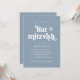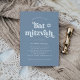 This simple and boho Bat Mitzvah invitation features white, retro typography on a pretty, dusty blue background with a matching Star of David.