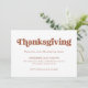 This simple, boho Thanksgiving dinner invitation features terracotta retro typography on a white background.
