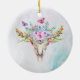 Boho Animal Skull with Butterflies and Flowers Ceramic Ornament