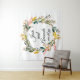 custom backdrop for photo booth, fall anniversary party back drop, personalised wedding prop ceremony decor, elegant head couple table photobooth, stylish rustic tapestries banner names, reception tapestry welcome sign botanical, engagement rehearsal dinner for bride, and groom shower autumn summer, spring winter botanical greenery wreath, event entrance foliage for them