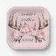 Boho Antler with Pink Peonies Wedding Paper Plate