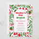 Boho arch and colourful retro folklore flowers Mothers Day brunch Invitation. This invitation for a Mother's Day brunch showcases a boho arch with a touch of retro folklore charm. The personalised text is elegantly displayed on the arch, while a vibrant pattern of folklore branches, red flowers, and green leaves creates a lively background. The bold typography used for "Mother's Day Brunch" adds a stylish and sophisticated element to the overall design.