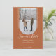 Boho Arch Photo Save the Date Announcement with a simple text design in a modern outlined box waiting for your photo and your wedding details to customise.