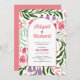Boho arch and retro folklore branches with flowers wedding Invitation. This wedding invitation features a bohemian arch with retro folklore elements in a unique colour palette of dark and mint green, peach, lilac, and magenta for a charming and elegant design. The boho arch is the focal point of the invitation, complemented by retro elements for a nostalgic and unique touch, perfect for a bohemian or vintage-themed wedding. The back of the invitation includes a QR code for online RSVP, with a peach background tying in with the overall design for a stylish and cohesive look.