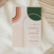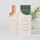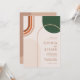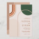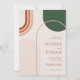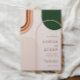 Modern boho wedding invitation with arch shapes in terracotta, rust, burnt orange, and dark green, emerald tones.