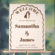 With warm tones and a unique arch shape, this boho welcome sign is made for nature-inspired weddings. Perfect for outdoor ceremonies, desert themes, or rustic venues.