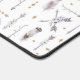 This decorative pattern features a scattered arrangement of stylised arrows, feathers, branches, and diamond motifs, illustrated in soft tones of lavender, beige, and grey. Each element is adorned with subtle floral details, creating a layered, artistic look. Set against a clean white background, the design evokes a sense of gentle movement and bohemian spirit, with a balanced composition that feels both playful and serene.