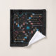 This Aztec-inspired bath towel pattern has a chic Boho vibe with a geometric arrangement of watercolor arrows around a blazing sun shape. This colourful square version has a more traditional southwestern colour scheme that includes bright turquoise and coral on the background colour of your choice (the black shown here is optional). Search ID748 to see other colour options and products with this pattern.
