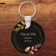Set against a striking black background, this keychain features apricot-coloured text that provides a warm and inviting touch. Delicate leaves in soft muted earth tones and earthy autumnal copper shades evoke the cosy charm of autumn, while the geometric frame in burnt orange and terracotta adds a rustic yet sophisticated flair. This keychain perfectly complements your autumn-themed wedding, capturing the essence of a bohemian chic celebration. This keychain radiates warmth and elegance, reflecting the romantic and modern minimalism of your special day.