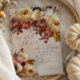 This boho autumn bridal shower invitation features a beautiful collage of cabbage roses, garden roses, ranunculus, berries, apples, and leaves. The invitation is set on a light tan background with the date, time, and location of the bridal shower in a tasteful font. The bohemian design and autumnal colours add a touch of whimsy and romance, and the overall design is perfect for celebrating the upcoming bride with your loved ones in a stylish and festive way.