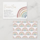 Our gender-neutral bohemian Boho Baby Books Enclosure Card features a delightful hand-painted watercolor boho retro rainbow nestled within a pastel rainbow frame. Perfect for welcoming baby boys or girls, each piece in this cute collection exudes a carefree elegance that captures the joy and anticipation of this special milestone. From invitations to decorations, infuse your celebration with the timeless charm of our enchanting collection, creating memories as magical as your little one. Shop now and embark on a journey of love and laughter with our whimsical boho retro rainbow baby shower collection.