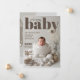 Introduce your new baby to the world with this elegant, magazine cover-inspired announcement card featuring the newborn's name and birth stats. The back features an elegant script that reads thank you and a custom message. The design is optimised for light background photos but you can use any image you want and customise the text colours and position to suit your needs.