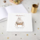 Capture warm wishes and memories with this Baby in Bloom baby shower guest book, featuring a vintage bassinet, watercolor florals, and personalised text. With a soft white cover and taupe script, this elegant hardcover book is perfect for rustic, botanical, or neutral baby shower themes. Leave it on the welcome table or gift station to create a timeless keepsake the mum-to-be will cherish forever.