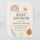 Invite family and friends in style with this beautiful boho baby shower invitation featuring earthy tones, a warm terracotta rainbow, soft sage greenery, pampas grass, and bohemian sun elements. Designed on a natural, textured background, this gender-neutral invitation pairs perfectly with pampas-themed décor and modern boho celebrations.