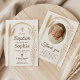 This elegant boho-themed card set includes a baptism invitation and matching thank you card, both featuring soft neutral tones, watercolor pampas grass, arched frames, and a space for your baby’s photo. A heartfelt and stylish way to invite loved ones and express gratitude after your child’s special day.