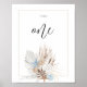 Elegant beach themed table number sign with watercolor arrangement of dried palm leaves and sea shells.