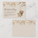 Bohemian bear baby shower invitations featuring a light brown background, a vintage watercolor baby bear, balloons, rustic boho pampas grass & florals, plus a modern 'books for baby' template that is easy to personalise.