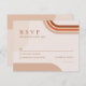 Modern boho wedding RSVP card with arch shapes in terracotta, rust, burnt orange, and dark green, emerald tones.