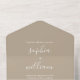 This modern boho beige all in one wedding invitation features a minimalist design with an earthy, boho desert colour scheme and clean, modern typography. A coordinating wedding suite is available.