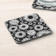 Boho Black and White Folk Flower Starburst Pattern Coaster