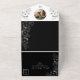 Embark on a journey of timeless elegance with our all-in-one black and white wedding invitation, blending classic sophistication with modern bohemian flair. Adorned with vintage silver floral lace and the couple's monogram, this invitation exudes refined charm. Your picture graces the front, while inside, discover the details of our celebration and an RSVP, completing this invitation to a day as unforgettable as your love.